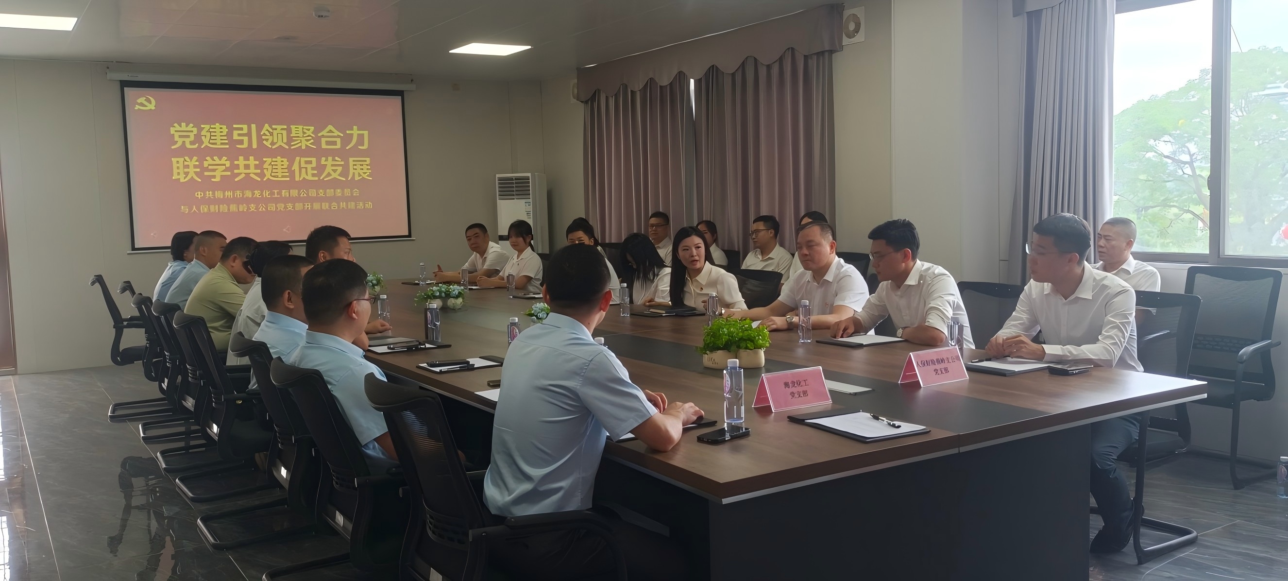 8月22日,海龍化工黨支部與人保財險蕉嶺支公司黨支部以 “組織共建、資源共享、發(fā)展共促” 為宗旨,開展聯(lián)合學習交流活動,雙方黨員及代表參與,旨在提升企業(yè)黨建質量,推動工作協(xié)同發(fā)展。